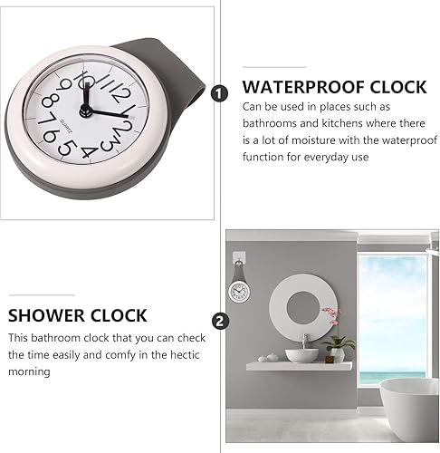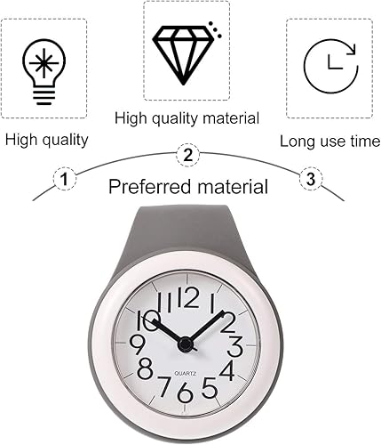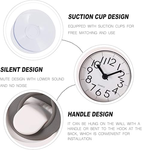 Besportble Horloge murale, étanche, silencieuse, avec ventouse, pour salle de bain, à suspendre