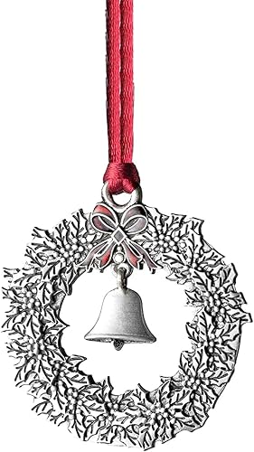 Zueyen Décoration de Sapin de Noël en étain Massif, Ornements de Sapin de Noël, Pendentif Artisanal DIY pour la décoration de fêtes de Noël, de fêtes et de Vacances (Couronne de Fleurs et Clochette)