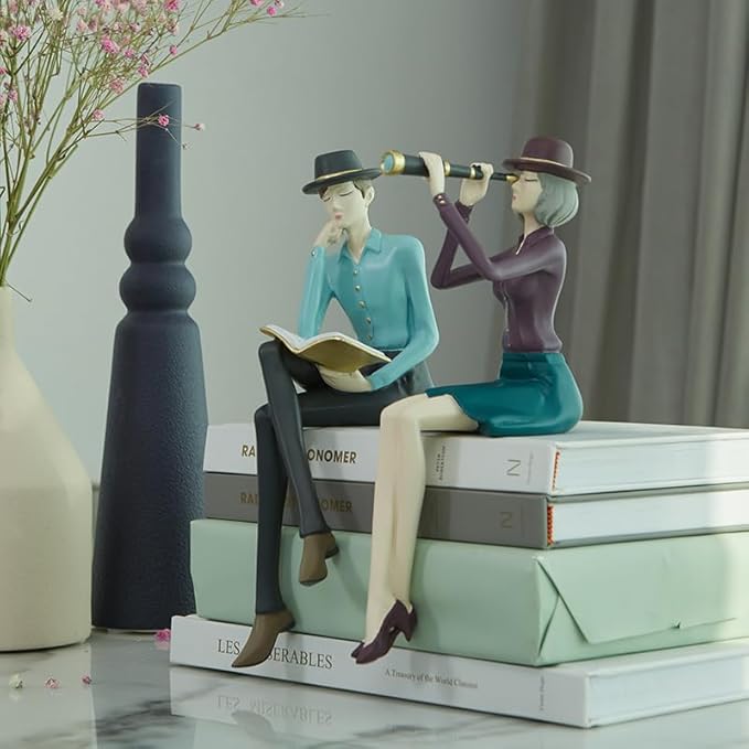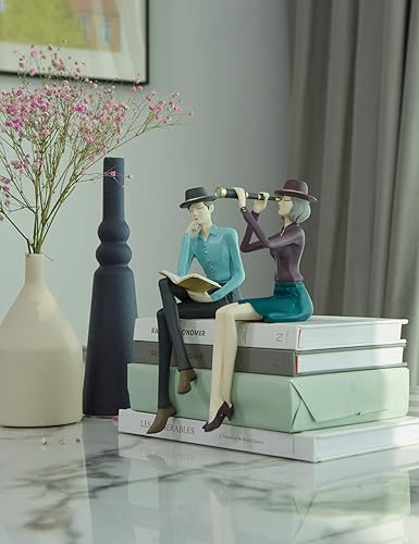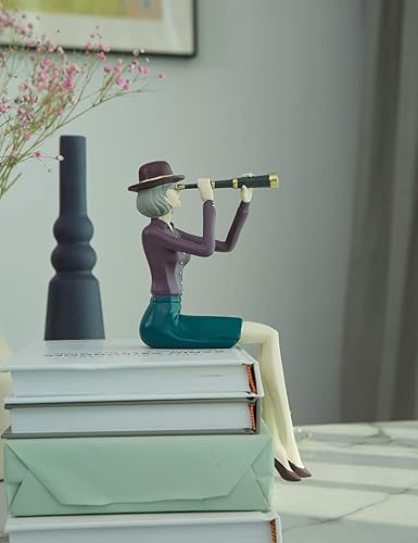 Amoy-Art Femme Statue Décor Moderne Arts Figurine Télescope Sculpture Maison Décoration Anniversaire Cadeau Résine 22cm