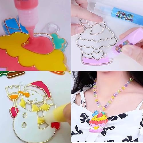 Goplnma Kit d'Art et d'Artisanat de Peinture de Cristal, Décoration de Fenêtre de Noël, Pendentifs Sans Cuisson pour Bricolage