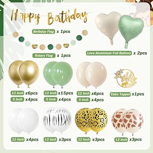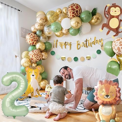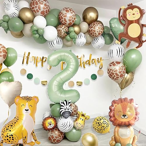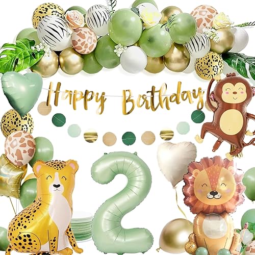 Décoration 2e anniversaire garçon fille - Décoration d'anniversaire 2 ans - Ballon vert safari - 2e anniversaire - Jungle - Décoration d'anniversaire 2 ans pour 2 ans - Garçon et fille
