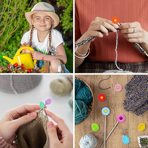 Neikafan 35 Pièces Bouchon Aiguille à Tricoter Tortue Marguerite et Feuille Bouchon Protecteur Aiguilles à Tricoter Capuchon en Silicone pour Tricot Couture Quilting Crochet, Colorés