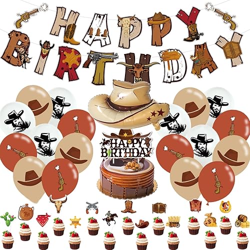 Kit de Décoration de Fête D'anniversaire de Style Cowboy, Décorations Anniversaire Racing Horse, Decoration D'Anniversaire Cheval Ballons,Bannière,Décoration de Gâteau