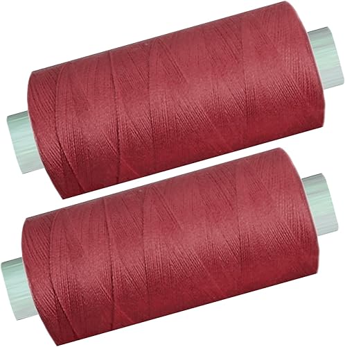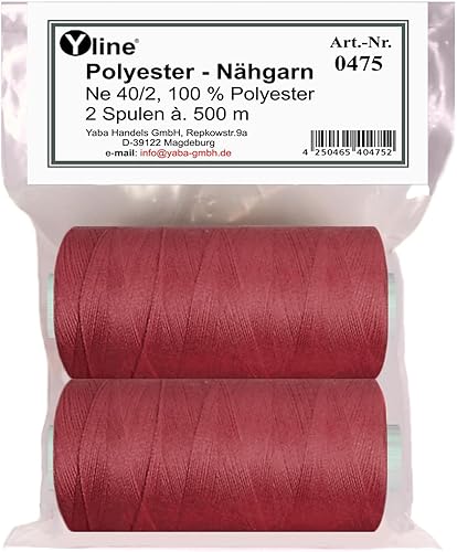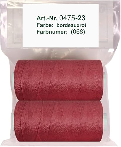 0475-23 Lot de 2 bobines de 500 m de fil à coudre/fil synthétique bordeaux - rouge - Fil à coudre en polyester pour machine à coudre (0,06 € /10 m)