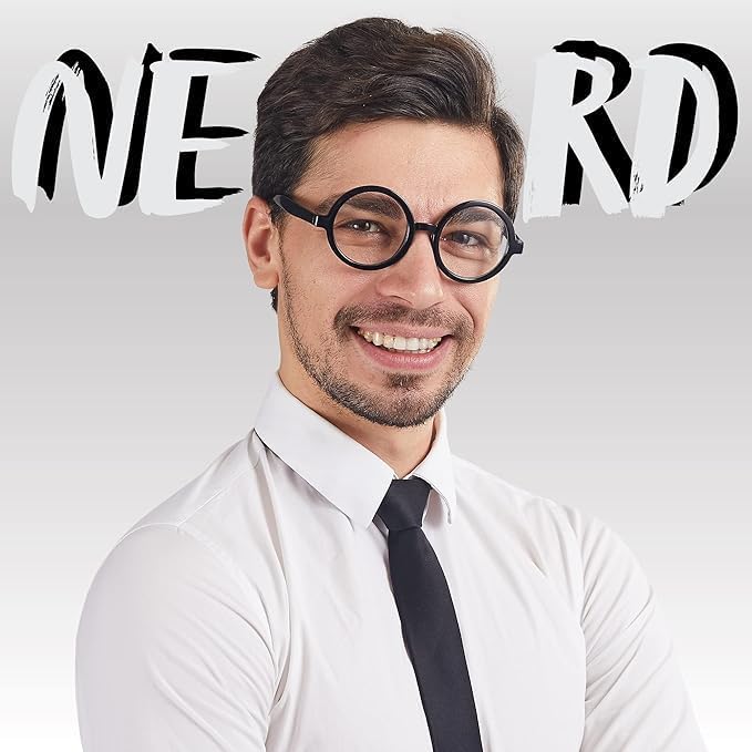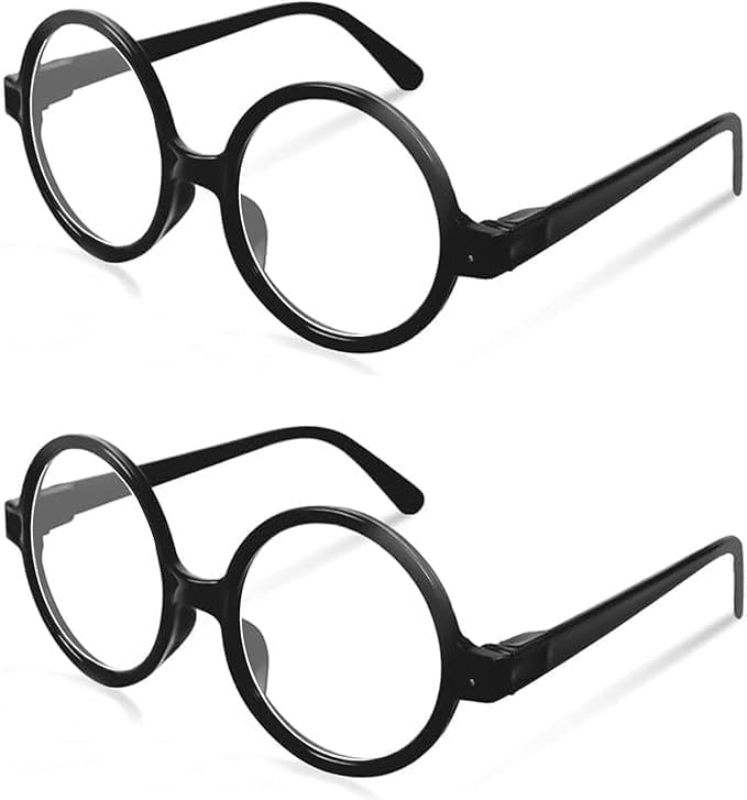 KHDULQ 2 Paires Fausses Lunettes de Vue -Lunettes de Magicien-Verres Sans Correction Rondes d'écolier Humour Monture Ronde Sorcier Noires pour Jeu de Rôle et Décoration enfant Fête Costumée,Carnaval