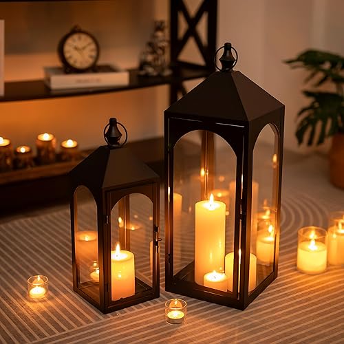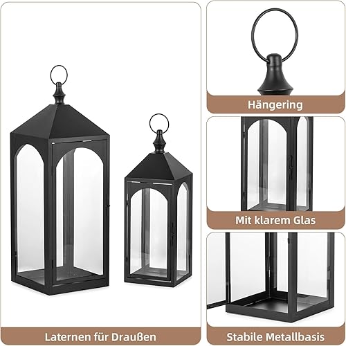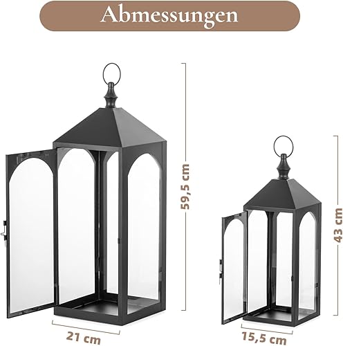 Staymoment Lot de 2 lanternes d'extérieur XXL 43/59 cm - Photophore d'extérieur résistant aux intempéries comme décoration de balcon, jardin - Noir - Avec verre