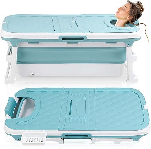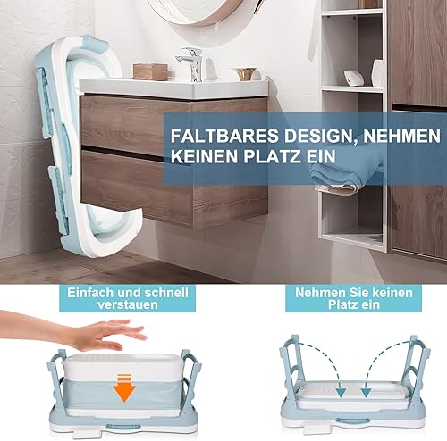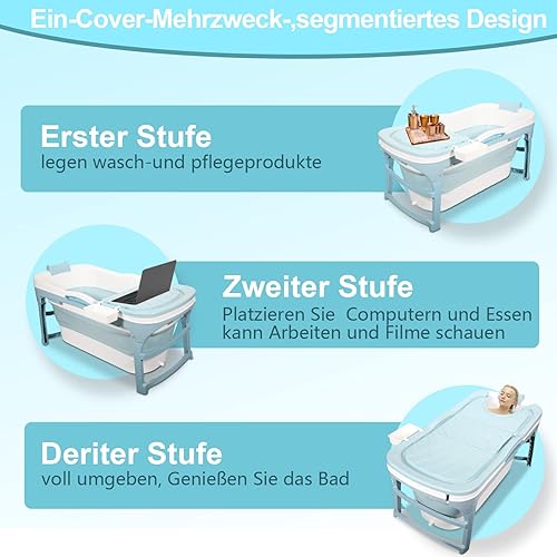 Sonnewelt Baignoire pliable pour adulte XXL - 149 x 60 x 50 cm - Pliable - Avec couvercle - Pour salle de bain, douche et balcon Bleu