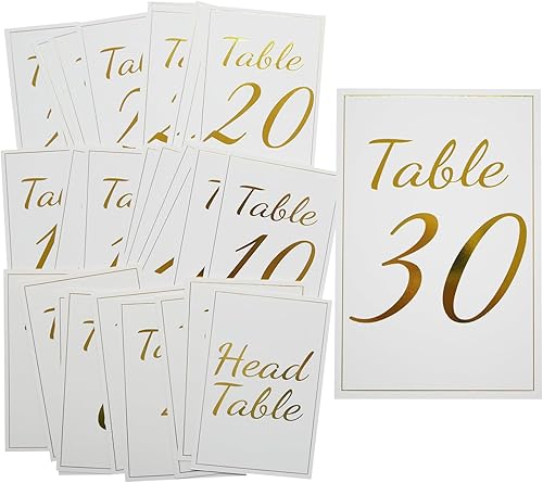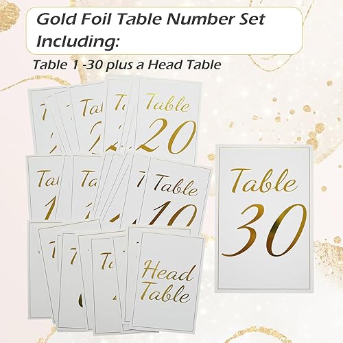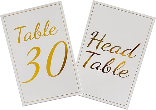 Numéros de Table Mariage or 1-30 et Head Table Panneaux de table double face 4 x 6 po pour décoration de table de réception de mariage ou de fête d'anniversaire Numéros de Table Cartes