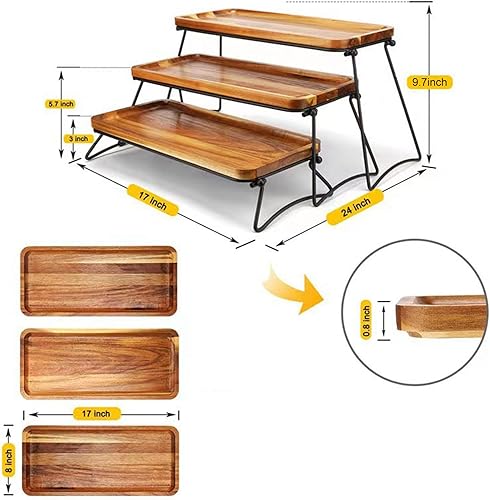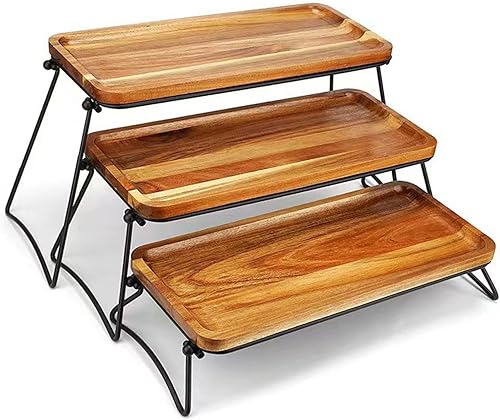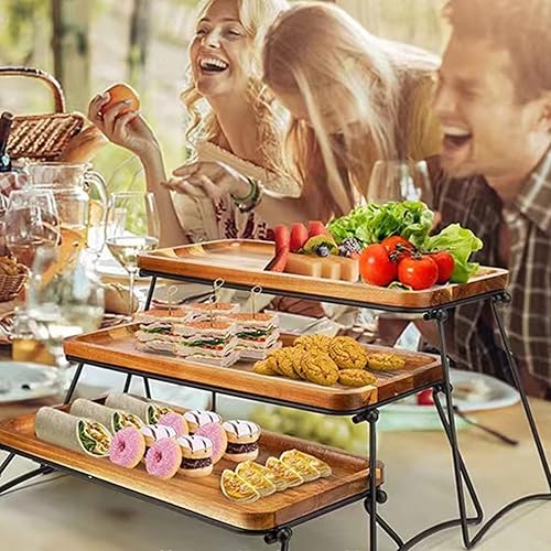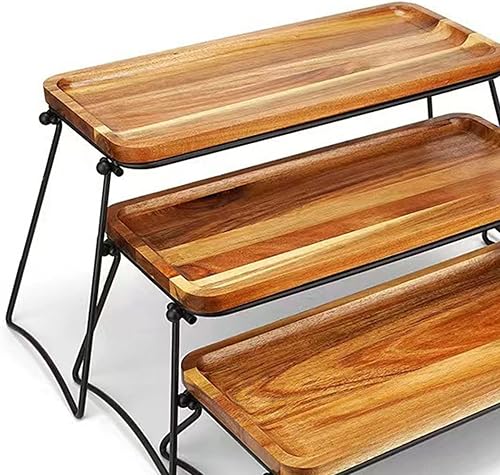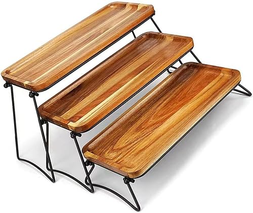 Plateau de service à 3 niveaux pour cupcakes, plateaux, présentoirs de nourriture et planche à charcuterie pour fête, pique-nique, buffet (couleur grain de bois)