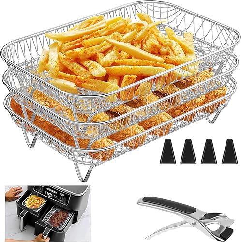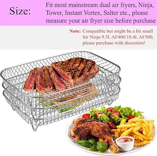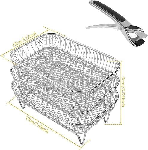 Grille Air Fryer,Panier Air Fryer,Grille Four Universelle,3 RéUtilisables Empilables Grille Pour Air Fryer Accessoires Acier Inoxydable 304 et 1 clip