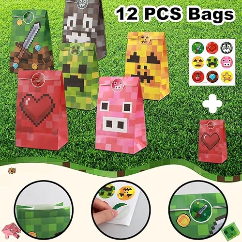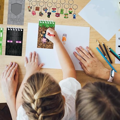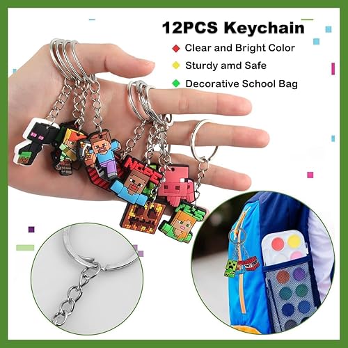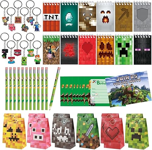 EKKONG Sac de fête Miner Gaming - Fournitures de fête d'anniversaire - Avec porte-clés, sacs de fête, crayons, invitations, carnet, décorations de jeu pour enfants, cadeaux d'anniversaire