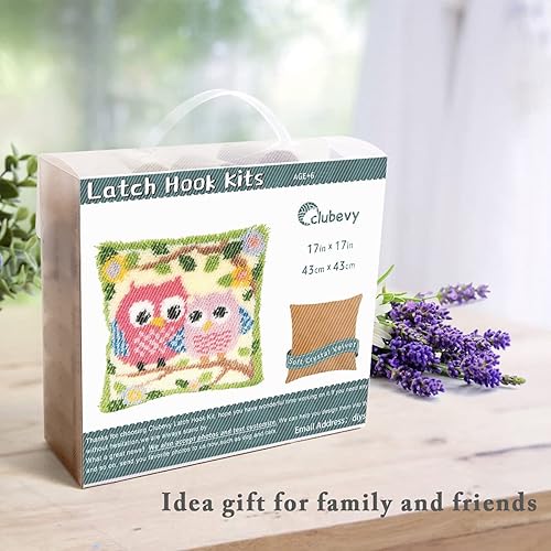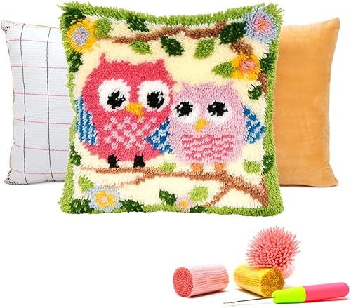 ROCKY&CHAO Kit de crochet à loquet pour adultes, couple de hiboux, 43 x 43 cm, kit de broderie au point de croix, kit de fabrication de coussin, décoration d'intérieur