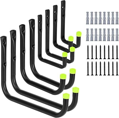 Queta Crochets pour Garage, Crochets utilitaires résistants de stockage de garage avec le bras jumbo , pour outils électriques, vélos, échelles, Paquet (4 tailles ,paquet de 8)