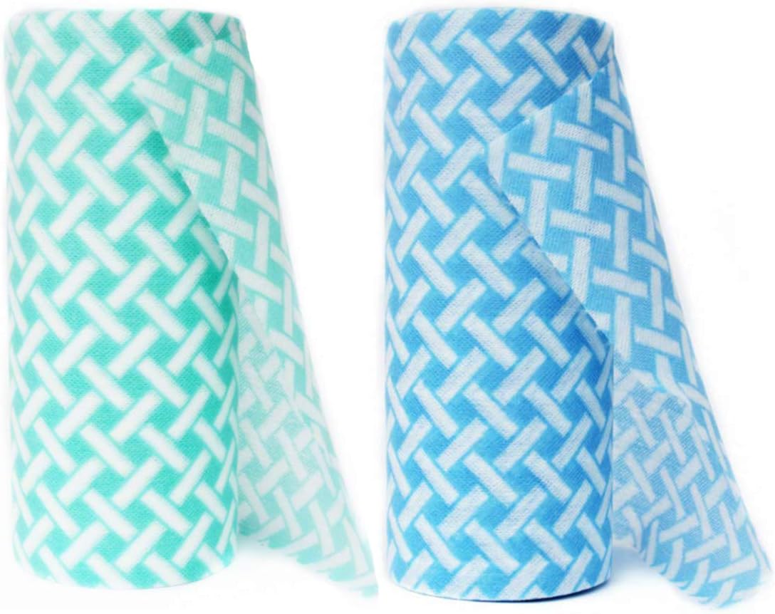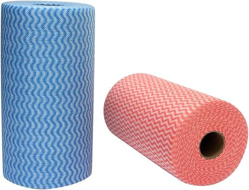 JEBBLAS Chiffon Jetable,Chiffons de Nettoyage réutilisables,2 Rouleaux Chiffon de Nettoyage Universel,200 Pièces,Bleu et Rouge.