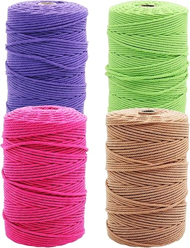 Lot de 4 fils de macramé 3 mm x 100 m - En coton - Accessoires de fil à tricoter - Laine pour tricot - Pour débutants, bricolage, tricot, décoration bohème, bricolage