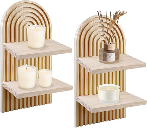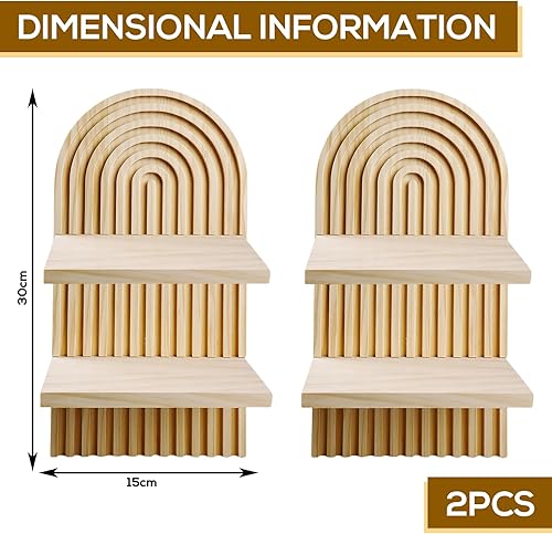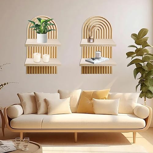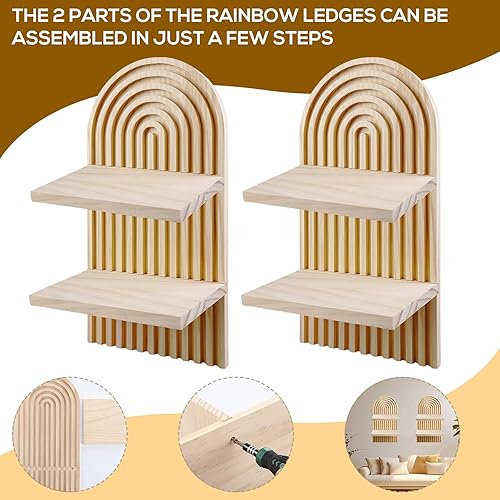 BORDEAG Étagère Murale Bohème, 2 pièces Étagères Murales en Bois Arc-en, Deco Boheme Etagère Murale, Adapté à Decoration Salon,Décoration Murale,Décoration Chambre