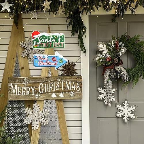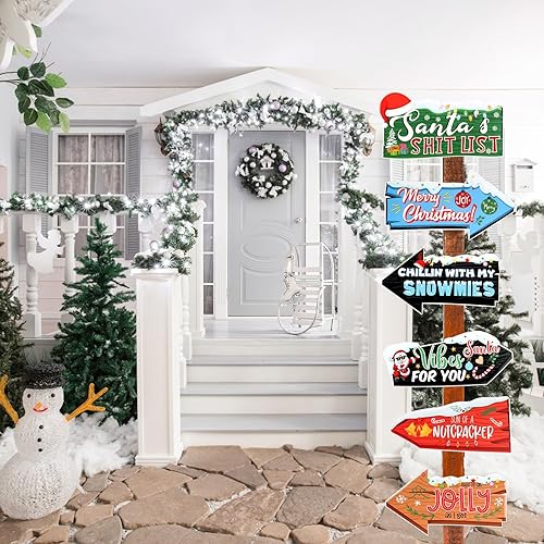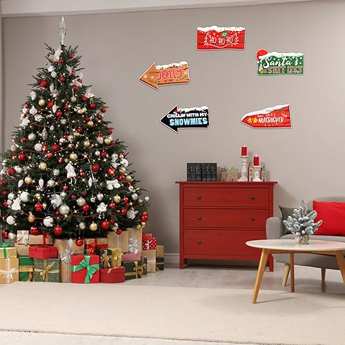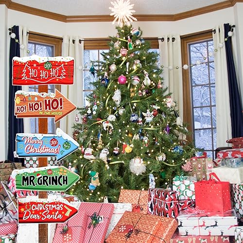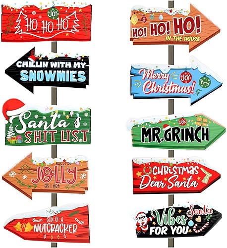 Gosknor 10pcs Panneaux de Direction de Noël, Panneau de Flèche de Noël Signalisation Directionnelle d'hiver pour Maison Jardin Pelouse Cour Décoration de Rue pour Les Fêtes à Thème de Festival