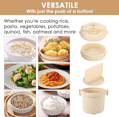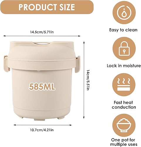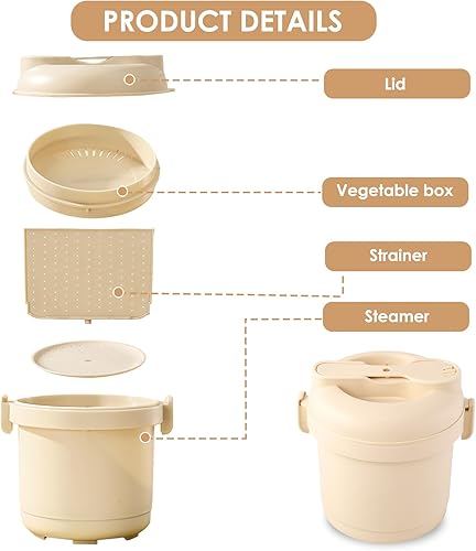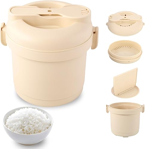 Cuiseur à riz pour micro-ondes, 585 ml - Cuiseur vapeur pour riz et pâtes - Petite boîte à riz vapeur pour cuisson à la vapeur, micro-ondes avec cuiseur vapeur, filtre, plateau, cuillère à riz, sans