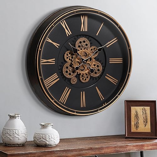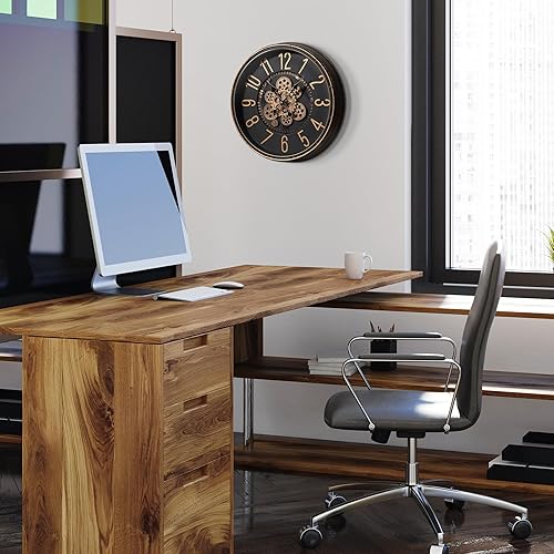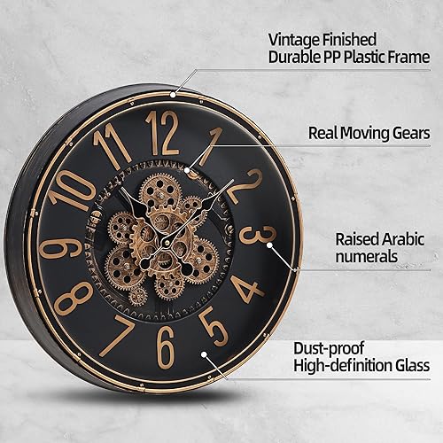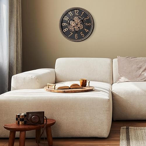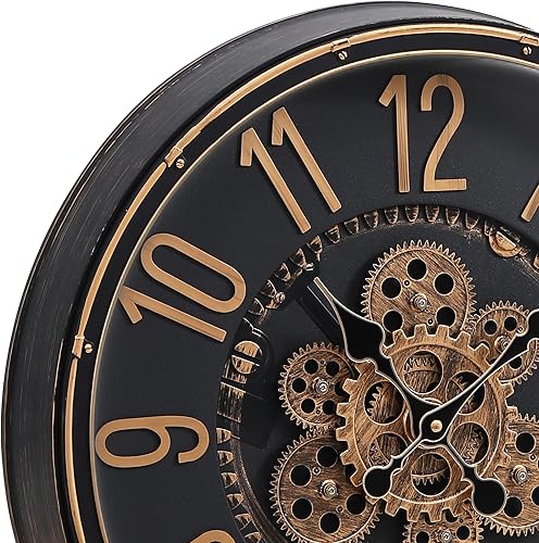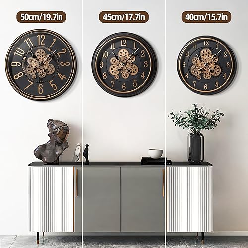 Mee 2ou Grande Horloge Murale avec Engrenages Mobiles, Horloge Murale Rétro de 40cm pour Décoration de Salon, Horloge Murale Décorative Industrielle Steampunk en Bronze Vintage Or pour Maison de Ferme