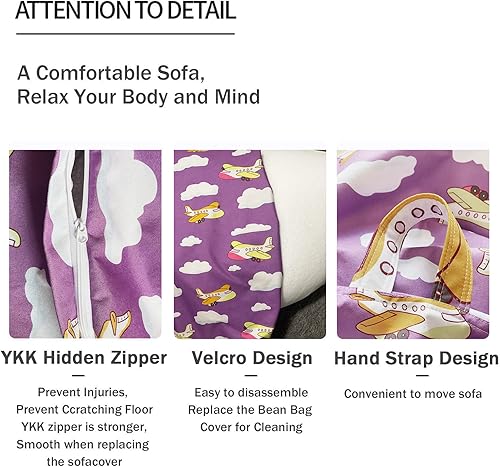 Highdi Motif Panda Pouf Poire sans Garnissage pour Adultes Enfants Rangement de Jouets Stockage Grande Fauteuil Pouf Pliable pour Fauteuil Housse de Pouf Poire (90 * 110cm,Vert)