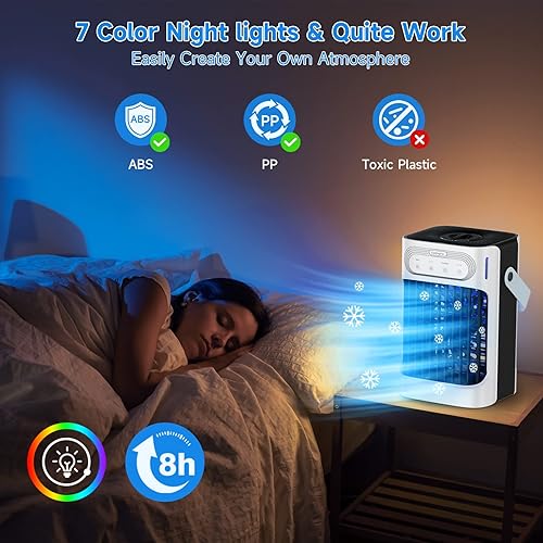 FethFire Portable Climatiseur Mobile, 800ML Rafraichisseur d'air avec 3 Vitesses d'air & 3 Brumes de Refroidissement, 2-8H Timer & 7 LED,USB Clim Mobile pour Chambres,Appartements et Bureaux(10W)