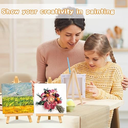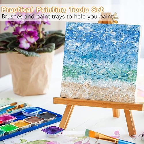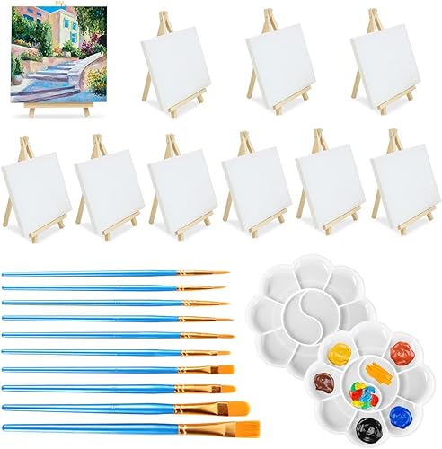 32Pcs Mini chevalets avec toile d'art, 10 petits chevalets triangulaires pour artistes avec 10 toiles, 10 pinceaux et 2 palettes de peinture, kit de support de peinture sur toile pour la fête