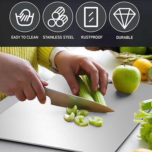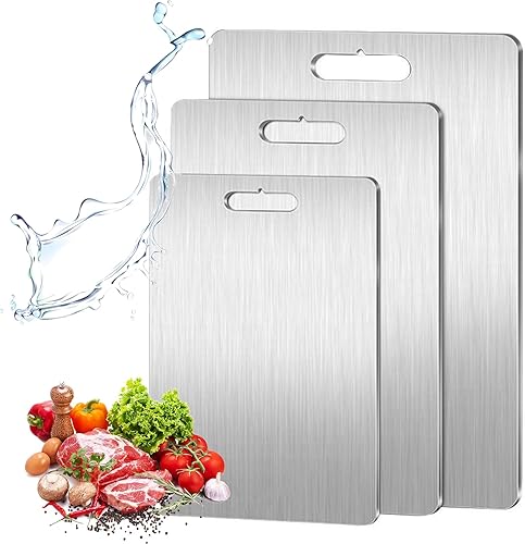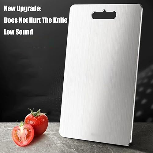 Katuchef Planche à découper en titane pour cuisine, 100 % titane pur, double face, de qualité alimentaire, antirouille, anti-adhésive, pour viande/fruits/légumes (taille M (34 x 23 cm)