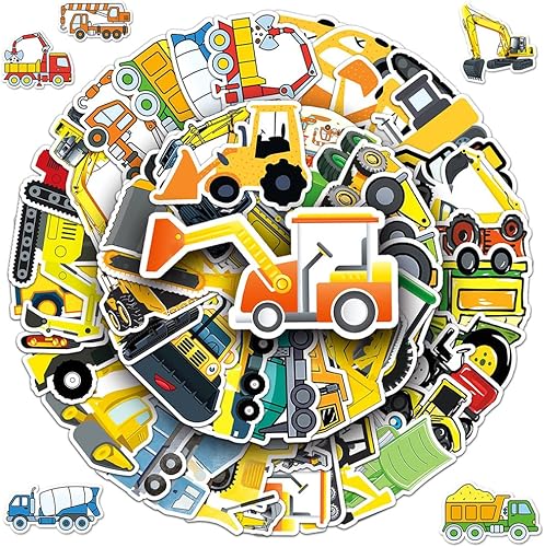 100 Pièces Autocollants pour Pelleteuses, Excavatrice Autocollant Enfant, Camion Autocollants, Vinyle pour Véhicule Stickers, pour Enfants Valise Skateboard Guitare Bouteille d'eau Casque etc
