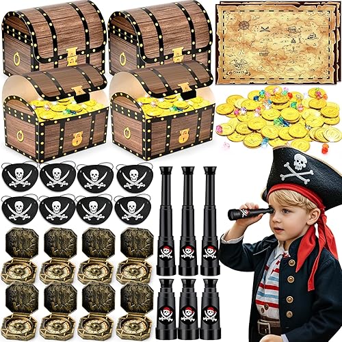 Pirate Cadeau Anniversaire Enfants Invites, Pinata Anniversaire Enfant avec Jouets Télescopes Boussole Cache-œil Pirates Sac Cadeau, Pirate Petit Cadeaux Anniversaire Invités Enfant Garcon Filles