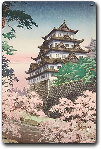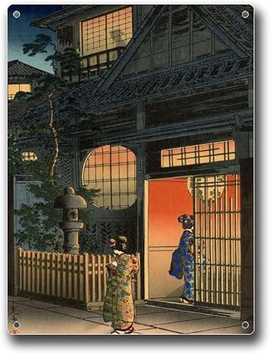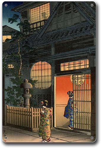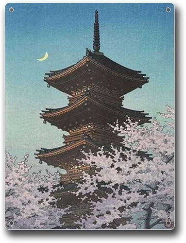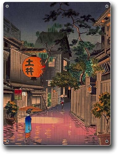 Anceky Plaque en étain style vintage japonais Hasui Kawase, design traditionnel japonais classique, décoration murale, convient pour bar extérieur, café, décoration d'intérieur rétro, 30,5 x 40,6 cm