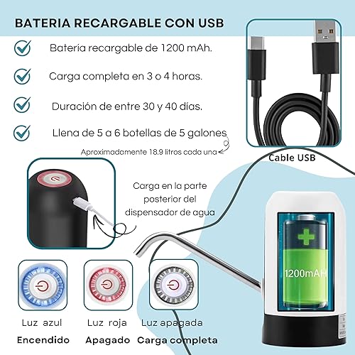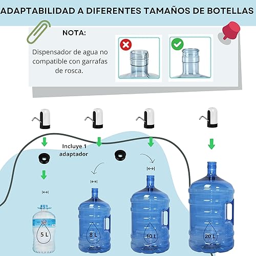 Distributeur d'eau électrique - Distributeur électrique pour bidons d'eau froide - Pompe à eau - Robinet électrique portable pour bouteilles - Doseur avec adaptateur. USB-C. 5.7L, 10L, 11.3L, 15L