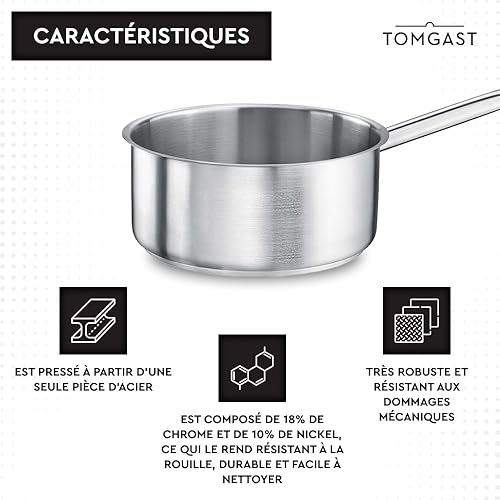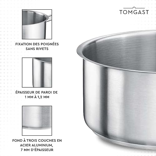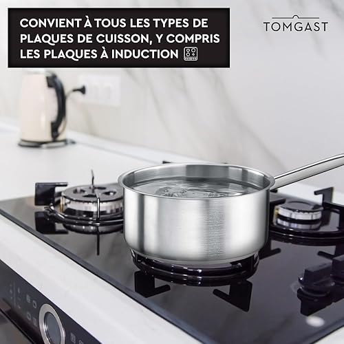 Casserole TOMGAST diamètre : 28 cm, hauteur : 12,5 cm, capacité : 7 l Acier inoxydable 18/10 | Épaisseur de paroi 1 mm à 1,2 mm | Piètement en acier aluminium incrusté | induction