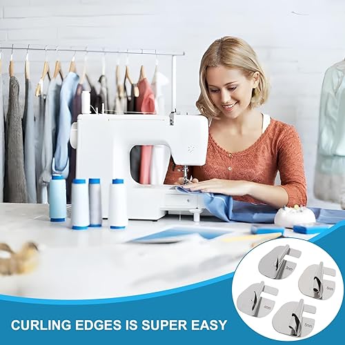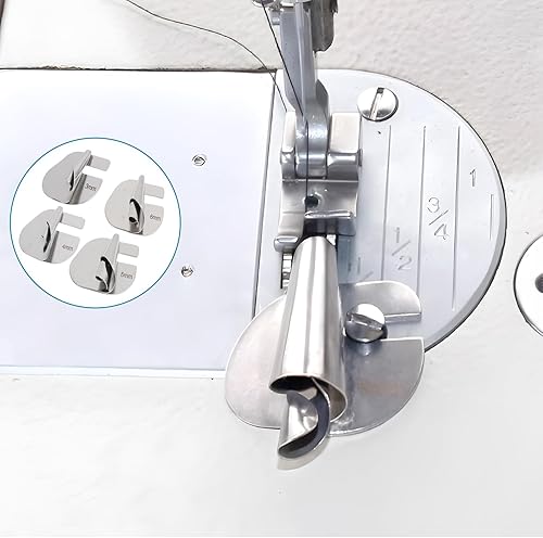 4 Pièces Pieds-de-biche à Ourlet Roulé pour Machines à Coudre, Pied D'Ourlet Roulé à Coudre, Ourlet Roulé Pied Presseur,Pied pour Ourlet Roulé 3-6 mm, pour Projets de Couture Domestiques