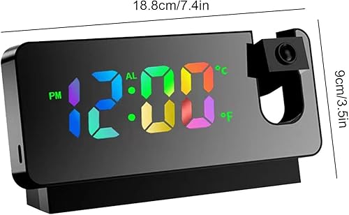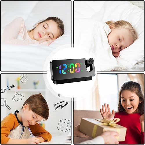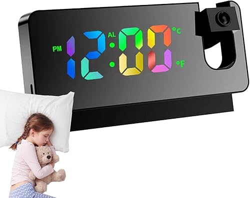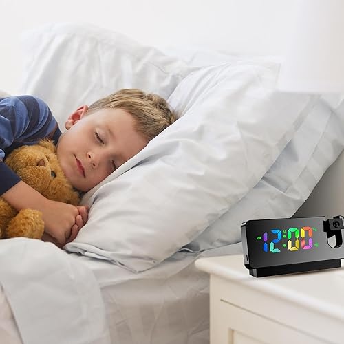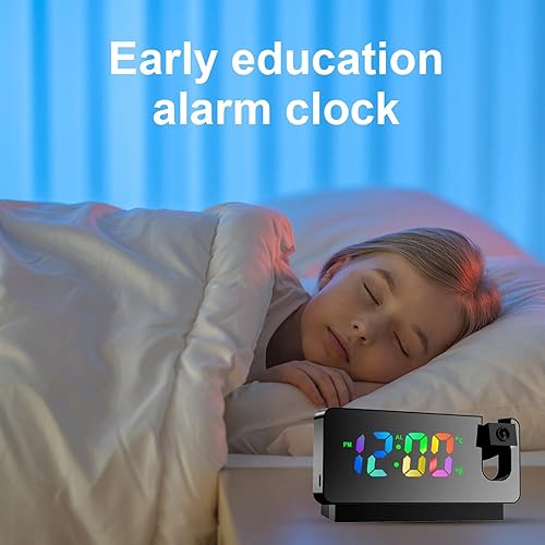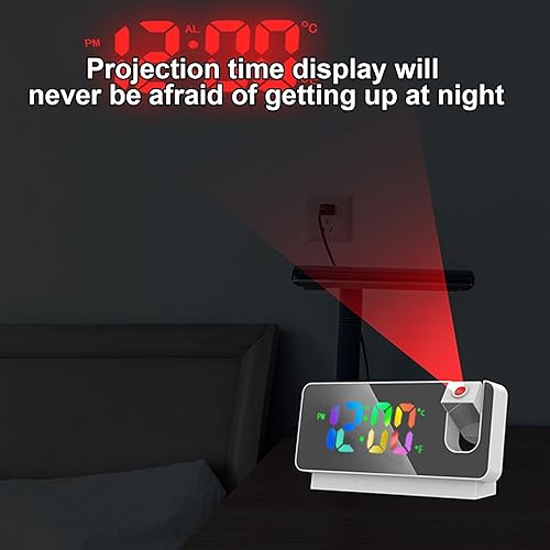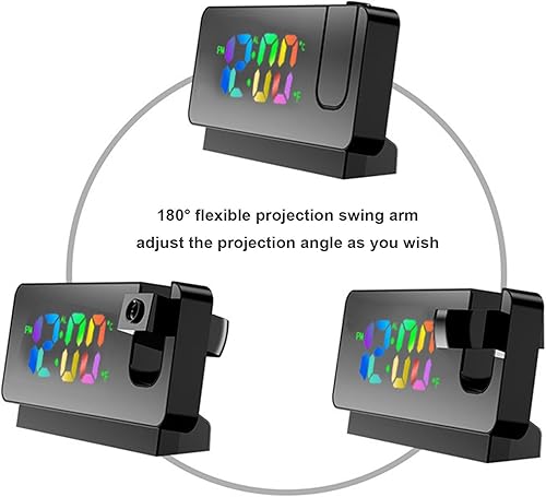 Horloge de projection pour chambre à coucher | Affichage LED Chargement USB | Bras oscillant flexible à 180 ° Réveil projection fort pour chambre d'enfant, bureau