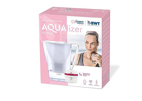 BWT Carafe filtrante Aqualizer blanche 2.7 L – Réduit le Calcaire, le Chlore et les Impuretés et Enrichit en Magnésium – 1 Cartouche Incluse