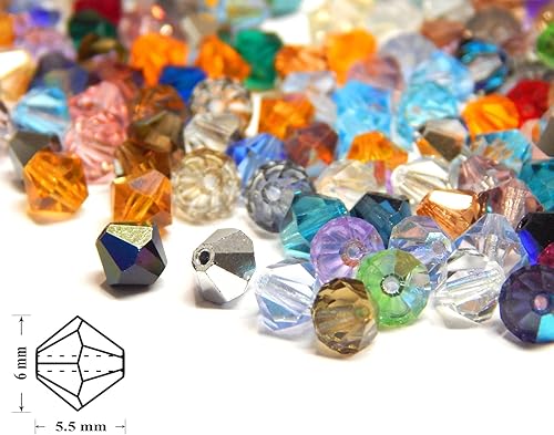 Preciosa - Lot de 50 perles en cristal de Bohême - 6 mm - Mélange de perles tchèques taillées - En verre - Bicône Beads