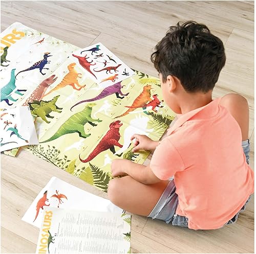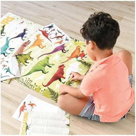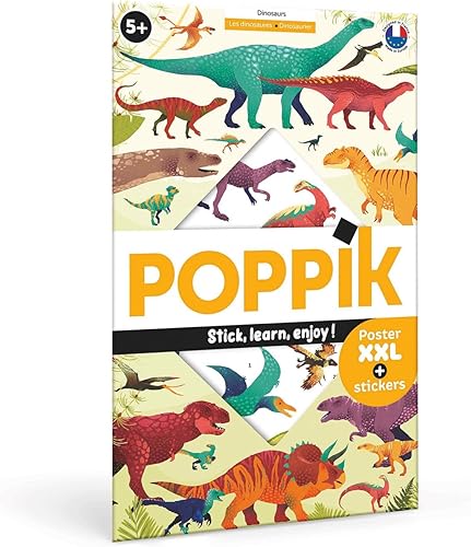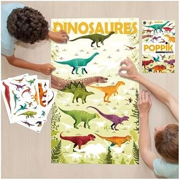 poppik Poster EDUCATIF Stickers Dinosaures - Puzzle Enfant Créatif Décoratif à Gommettes Autocollantes Repositionnables - Cadeau Coloriage Enfant Géant, Jeu Enfant 32 Stickers - 5 à 12 Ans