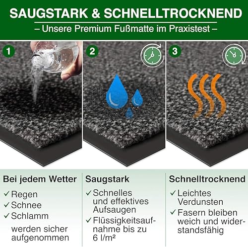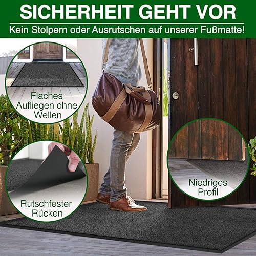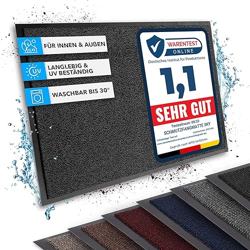 Casa Pura® Paillasson d'entrée d'excellente qualité (note de test 1,7) Disponible en 8 tailles Anthracite/gris, Résine acrylique, Anthracite, 90 x 120 cm