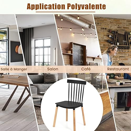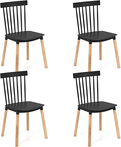 RELAX4LIFE Chaise Salle a Manger Lot de 4, Chaise Windsor Bois avec Dossier à Barreaux en PP, Pieds en Hêtre, Chaise de Cuisine, Style Scandinave, pour Salle à Manger, Salon, Charge 150 KG (Noir)