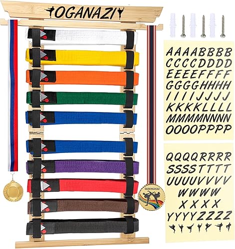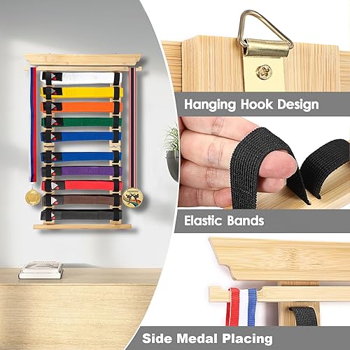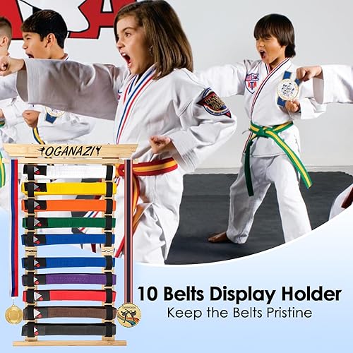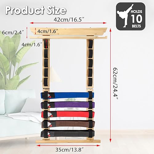 SUMNACON Support de ceinture pour 10 ceintures de sport de combat - En bambou - Support mural - Pour ceinture de judo, de karaté - Cadeau personnalisable (pas de ceinture)
