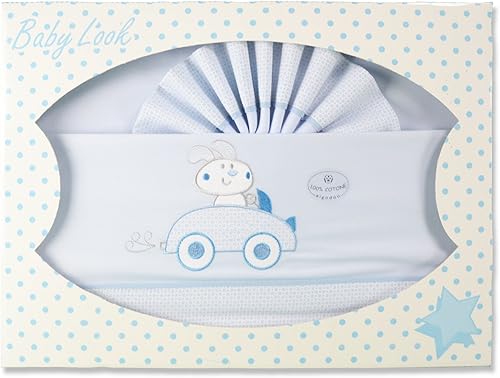PEKITAS Lot de 3 draps fins pour voiture, nacelle/poussette 40 x 80 cm 100 % coton fabriqué au Portugal. Taie d'oreiller + drap housse + caoutchouc, voiture bleue