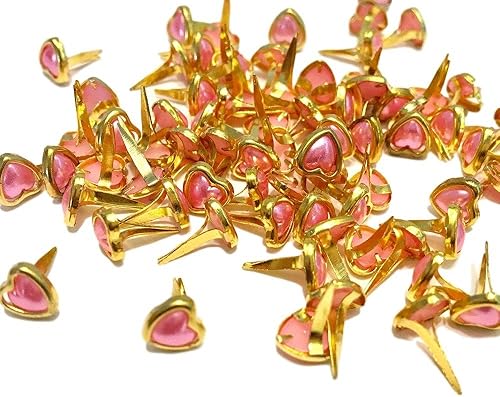 Lot de 100 Mini Pointes en Forme de Cœur Dorées avec Milieu Rose pour Travaux Manuels et Scrapbooking Doré - 6 mm