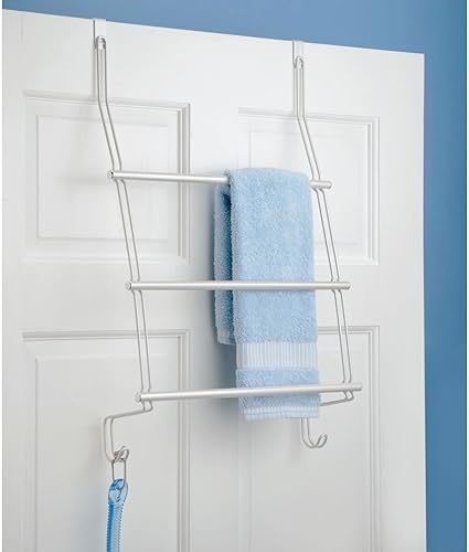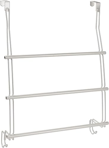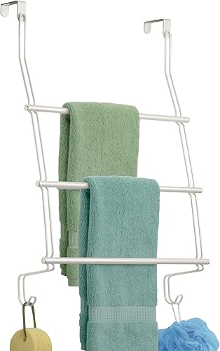 mDesign Porte-Serviettes à Monter sans perçage – Porte-Serviettes de Porte Facile à accrocher – comme Porte-Serviettes de Douche, Porte-Serviettes et pour vêtements – en Acier Inoxydable Robuste