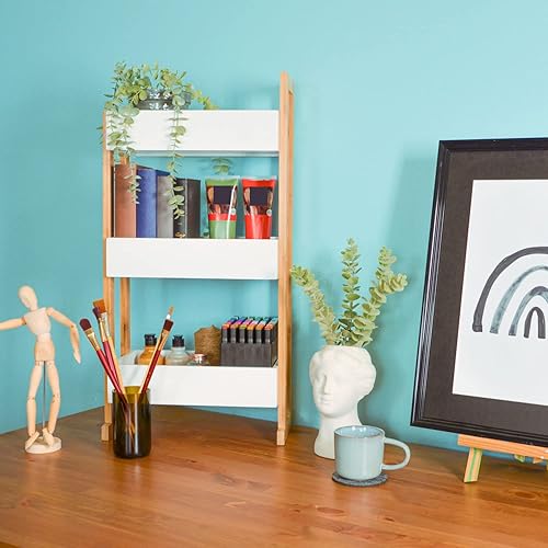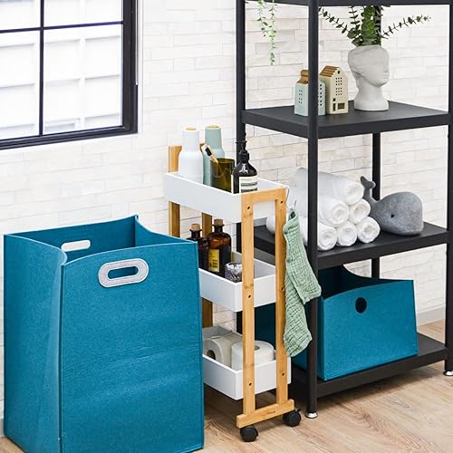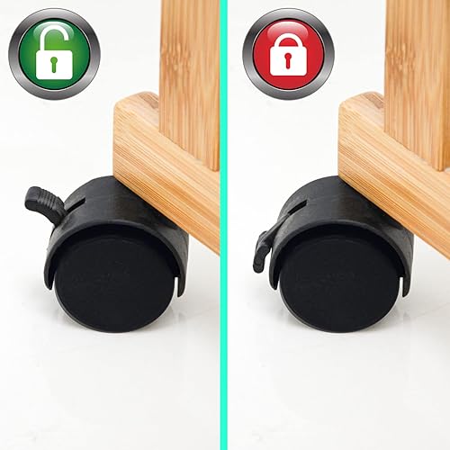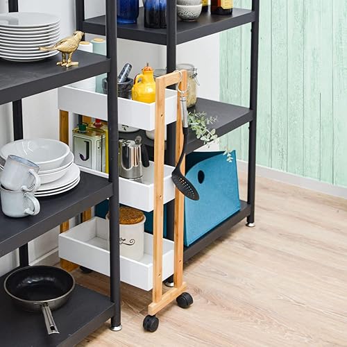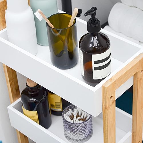 DuneDesign Étagère Roulette en Bambou - 38x20x80 Desserte à Roulette - Meuble Salle de Bain en Bois - Pétite Ètagère Salle de Bain Meuble WC Pétit Chariot Rangement Cuisine Roulette Desserte Roulante