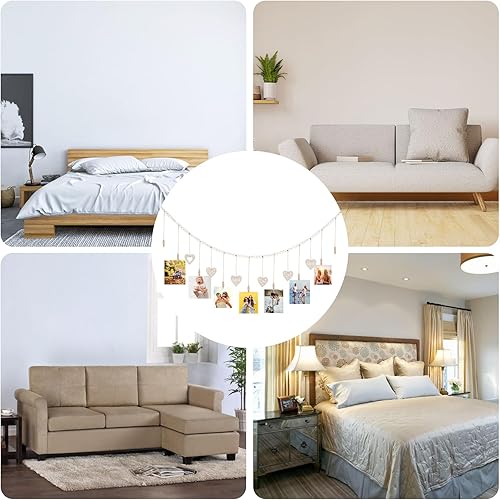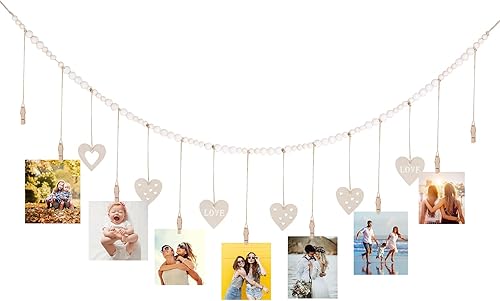 Jasfyee Présentoir photo mural avec 9 clips en bois, décoration murale en forme de cœur de 138 cm pour accrocher des cartes postales photo, décoration de chambre à coucher, de salle de bain