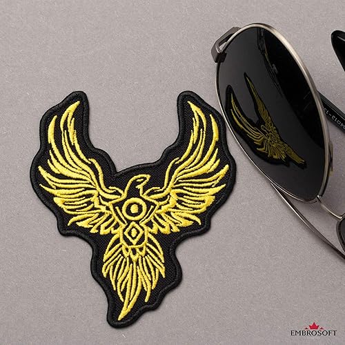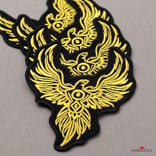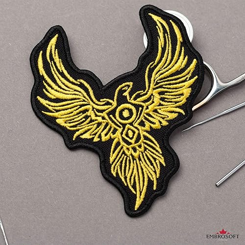 Écusson brodé Phoenix Bird jaune thermocollant (7,6 x 8,9 cm)