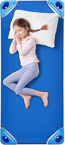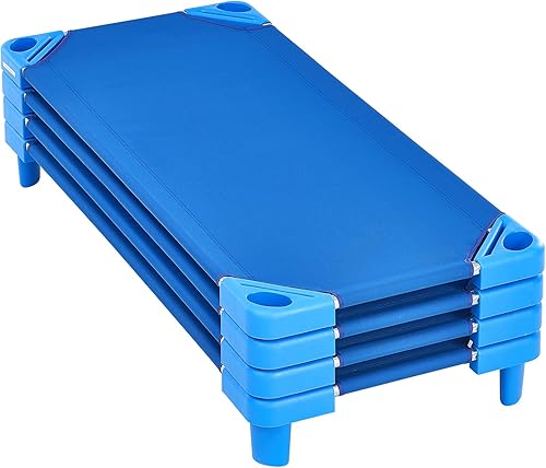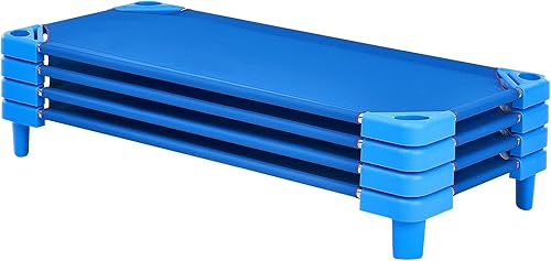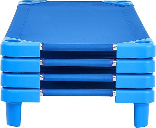 VEVOR Lit de Sieste empilable pour Enfant, 4 pcs, lit de Couchage Portable pour Tout-Petits, 130 x 57 cm, lit de garderie pour Enfants, pour Salle de Classe préscolaire, pour Dormir, se Reposer, Bleu