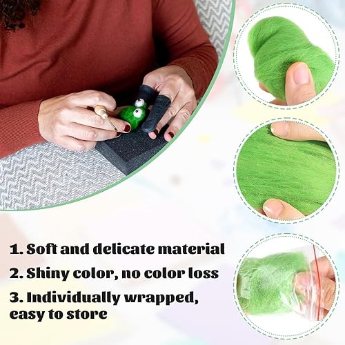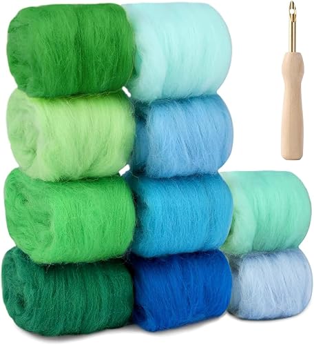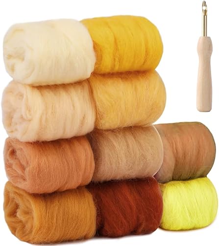 NAROSEBE Kit Feutrage Laine, Laine à Feutrer avec Aiguille de Feutre, Laine Cardée pour Feutrage Naturelle, Laine Feutrée Débutant, Fil de Laine pour Feutrage 10 Couleurs, pour Débutant DIY Artisanat