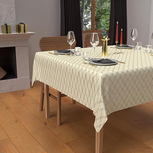 Soleil d'ocre, Nappe Festive carrée Anti-tâches en Pur Coton 180x180 cm Celeste Argent