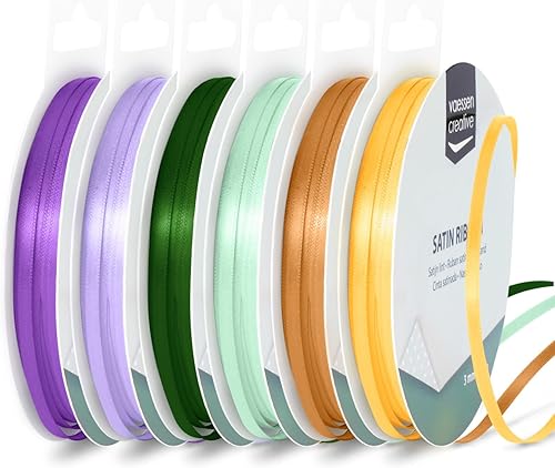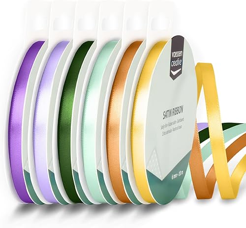 Vaessen Creative Ruban Satin 6 mm x 10 m - Bolduc Double Face pour Cadeau, Emballage et Bouquet Mariage - Couleurs Méditerranéen - 6 Pièces